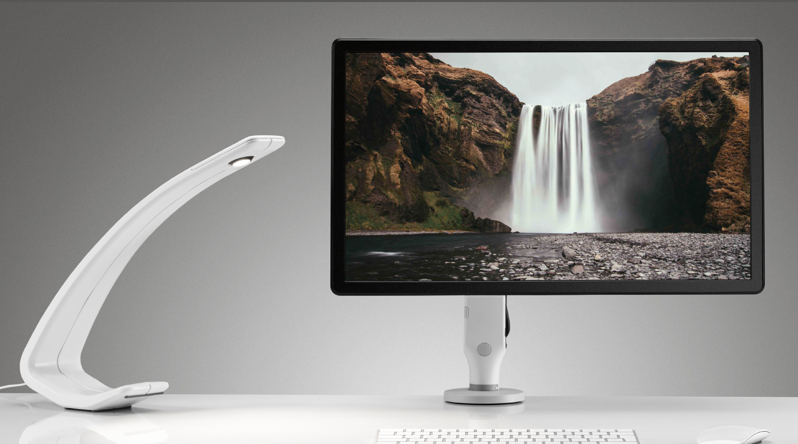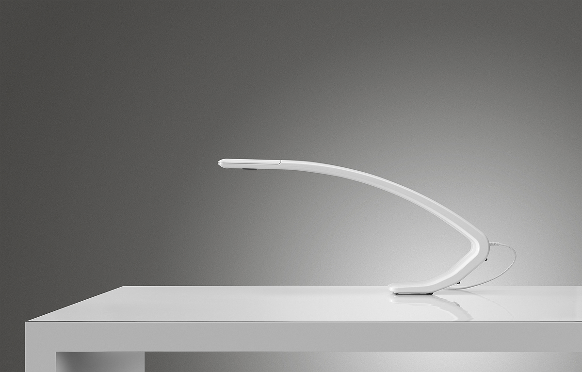 Die glatte und schlanke Silhouette von Amble, die ohne Gelenke und Scharniere auskommt, bietet eine intuitive Ein/Aus-Funktion durch einmaliges Berühren und eine Dimmfunktion durch längeres Berühren, und das alles auf einer minimalen Stellfläche. Zur Verringerung des Stromverbrauchs schaltet sich die durch Berührung dimmbare LED mit 206 Lumen automatisch nach 10 Stunden Inaktivität aus.