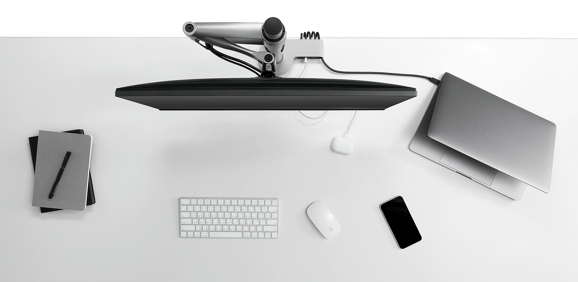 Ondo peut être facilement installé sur des systèmes de bras de moniteur CBS existants pour créer un espace de travail fortement connecté et ergonomique. De plus, avec trois coloris disponibles qui s’assortissent aux bras noirs, blancs ou argentés et des options de montage alternatives, Ondo s’intègre parfaitement à tous les espaces de travail.