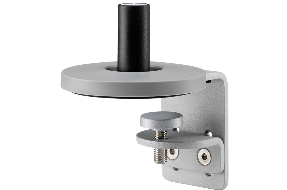 Para utilização quando não é possível ou desejável furar a superfície da mesa de trabalho. A espessura das mesas de trabalho suportada varia desde os 0 e os 71mm. Disponível em branco e em prata.