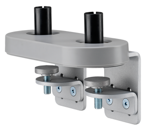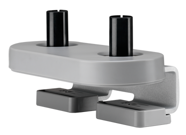 Indicado para soluções de braços Flo para monitor duplo. O duplo grampo usa menos superfície do que dois grampos individuais. A espessura das mesas de trabalho suportada varia desde os 12mm e os 25mm. Disponível em branco e em prata.