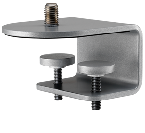 Para uso quando não for possível ou desejável perfurar a superfície da mesa. Gama de grampos standard para mesas com espessura entre 12 mm (½ “) e 25 mm (1”). Estes grampos também são normalmente usados em mesas com tampos de correr porque o grampo tem um baixo perfil que não irá colidir com vigas e bandejas de cabos, etc.