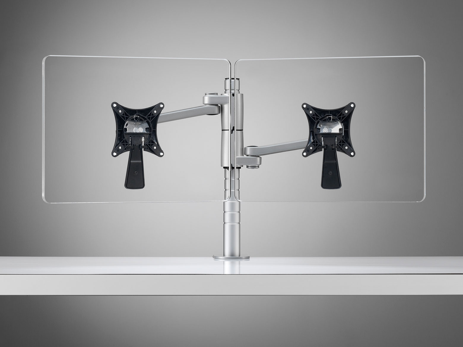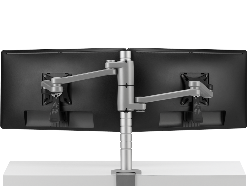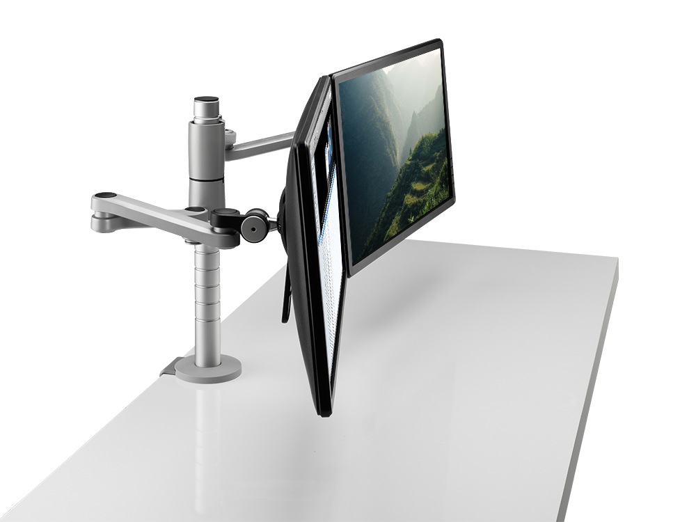 Daisyone com o seu design inteligente permite que no mesmo poste sejam assemblados dois monitores à mesma altura, criando assim uma solução de suporte duplo optimizada.