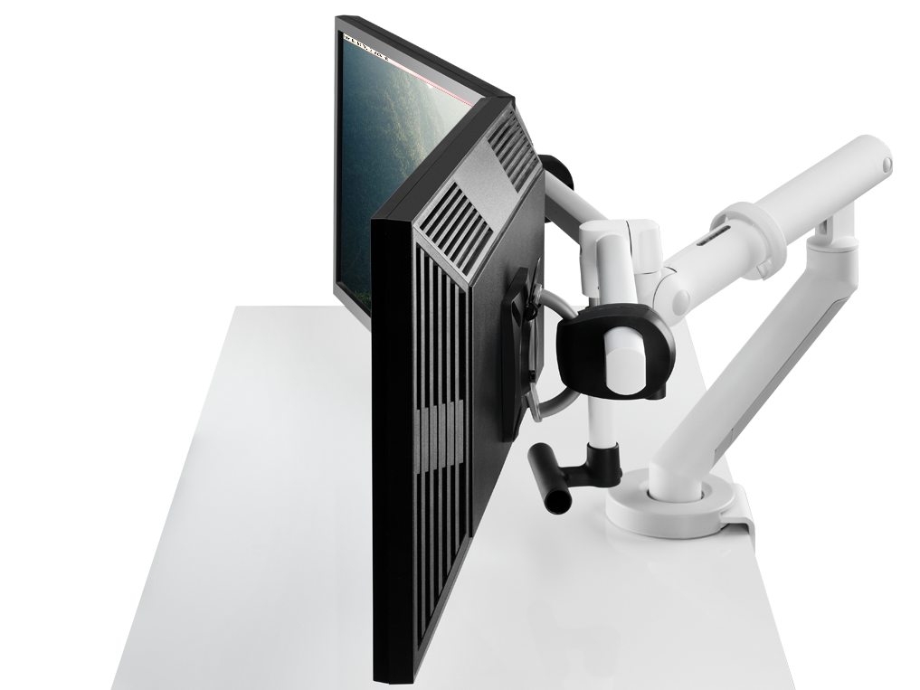 Flo Plus é o suporte para monitor duplo ideal para duas telas de alta carga num formato dinâmico. As telas não se movem independentemente uma da outra, mas em vez disso rodam a partir de um ponto de fixação central e podem ser posicionadas de acordo com os requisitos dos utilizadores.