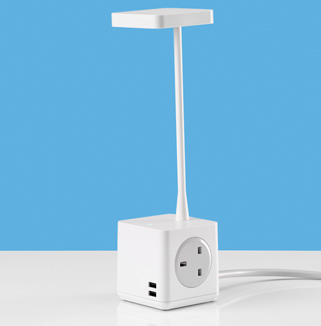 A stunning fusion of light and power, Cubert uniquely combines the ability to power and charge portable devices with a touch dimmer LED desk light.