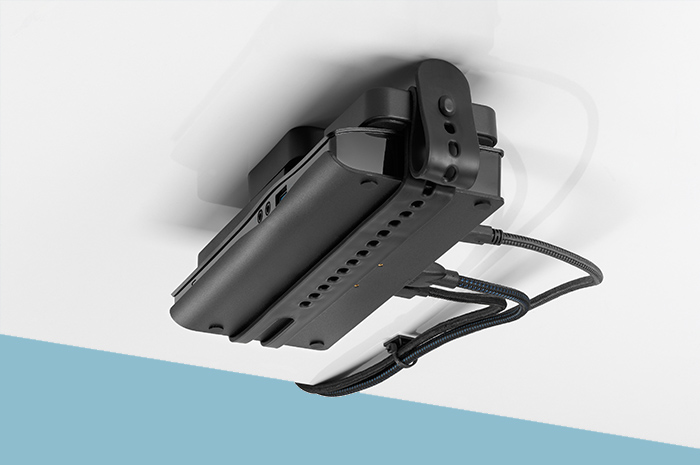 Il peut être positionné derrière le moniteur lorsque vous utilisez Wishbone / Daisyone ou sous le bureau pour l'accès à un support informatique pratique.