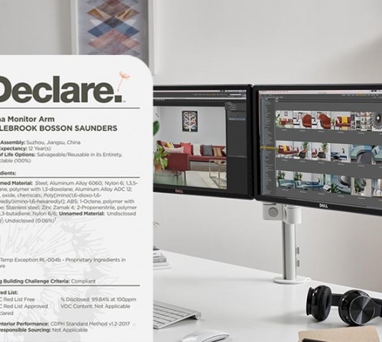 We are excited to announce that Ollin and Lima monitor arms now have Declare Labels, demonstrating that the products are compliant with the Living Building Challenge. They join Flo, which achieved Declare back in June.
